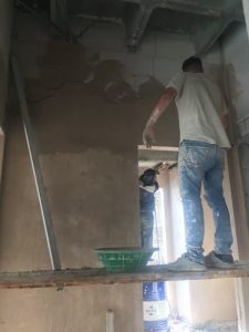 شروع عملیات گچ وخاک در طبقه اول پروژه